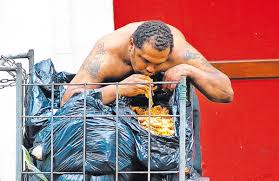 Catando comida entre os detritos.